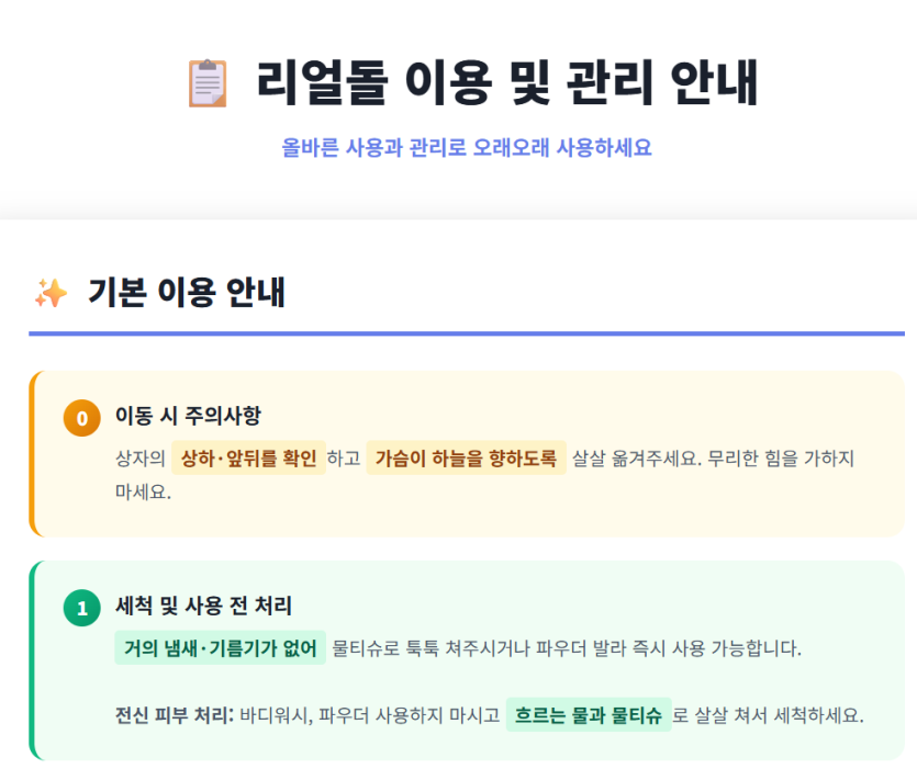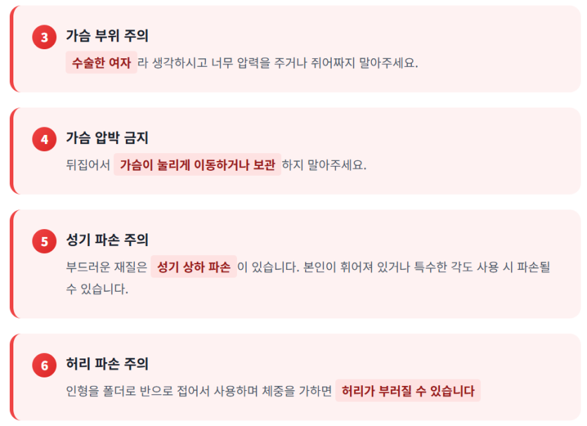 리얼돌 수령 검품 사용 주의사항 수리 폐기 간단 안내